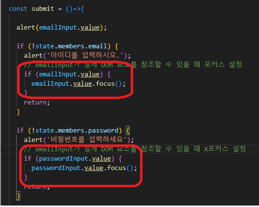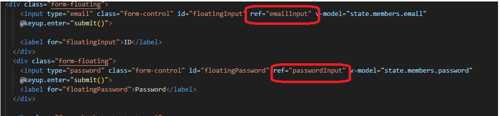 <input> 안에 있는 ref="emailInput"을 통해서 javascript단에서 컨트롤하는 것이다.