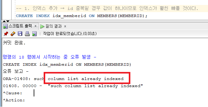 알고보니 Oracle DBMS의 경우 Primary Key는 자동 인덱스화한다고 한다.