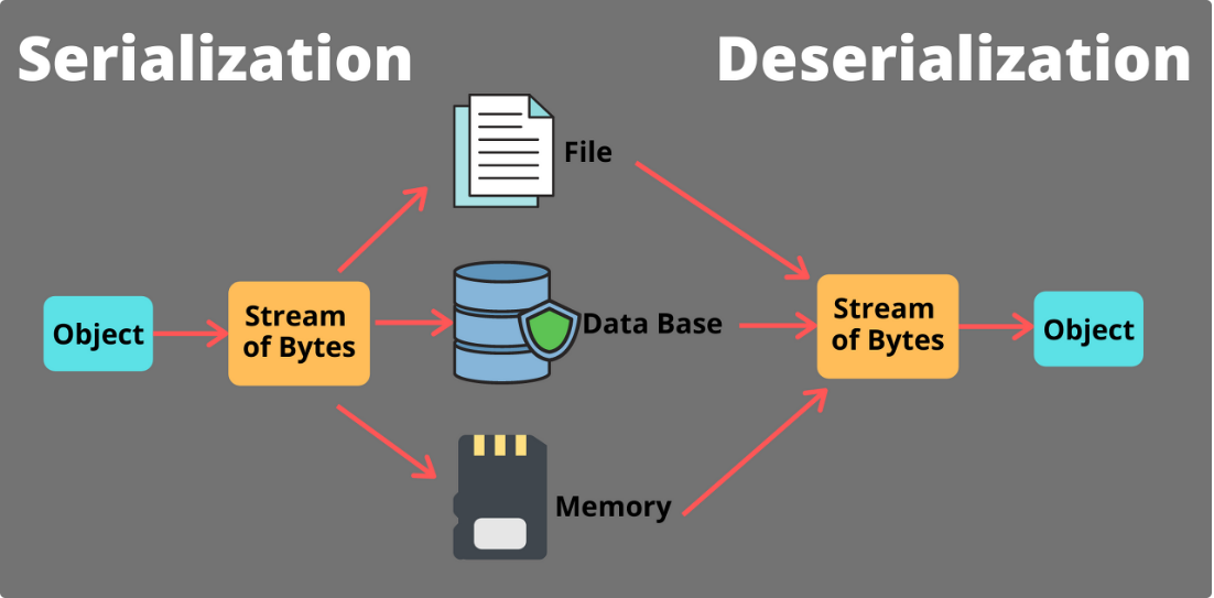 형태로 변환하여 데이터베이스나 파일과 같은 외부 저장소에 저장해두고, 다른 컴퓨터에서 이 파일을 가져와