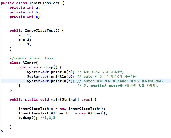 클래스 내부에서 선언된 내부 클래스를 멤버 변수처럼 접근