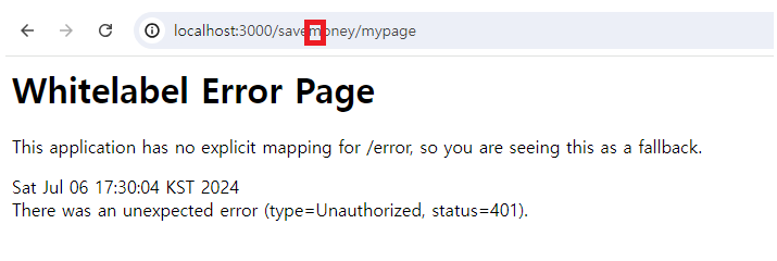 문제점 : Spring Security 통해서 /savemoney/mypage에 로그인 할 때 필터링을 걸었다. 그런데 로그인이 되지