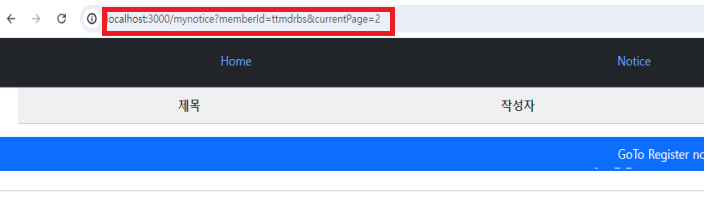 2) 그 후 게시글 등록(GoTo Register)을 하면 오른쪽 이미지와 같이 정상적으로 처리가 된다.