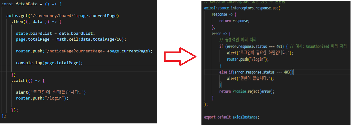 그래서 AxiosInstance객체에서 Interceptor을 이용해 요청을 가로 채고 공통 모듈을 만드는게 효율적인 것 같다.