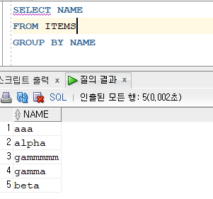 위를 보면 각각 DISTINCT와 GROUP BY이다. 결과 값이 똑같이 나오며 정렬이 된다면 beta가 먼저 나와야 한다.