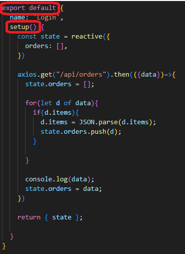 axios.post를 통해 해당 url을 통해 서버에 갔다와서 reactive라는 함수를 통해 state객체를 저장했다.